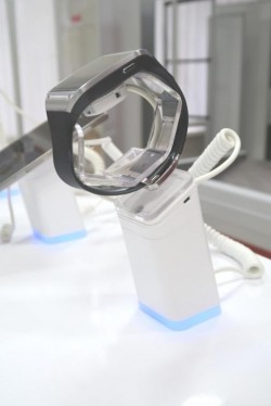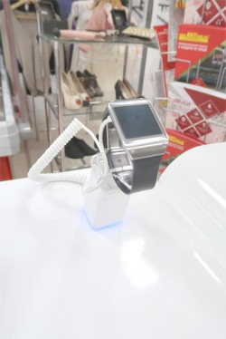 The watch strap fully wraps around the sides of the Digital Watch stand, ensuring the watch is securely positioned. The stand itself is mounted onto a sensor with an additional sensor module.